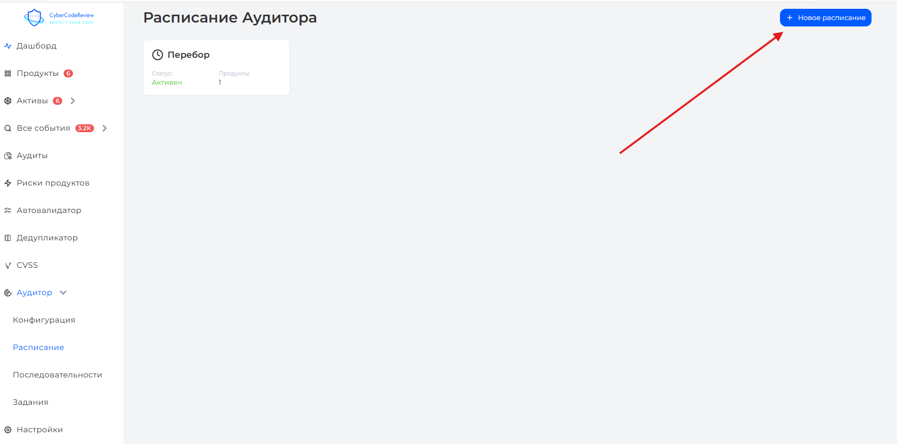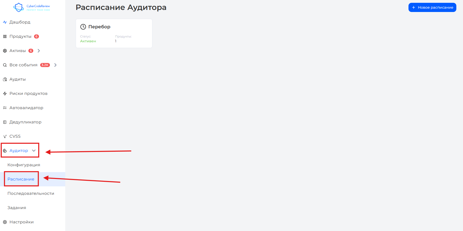 1. Со странице Дашборда перейдите в Аудитор -> Расписание