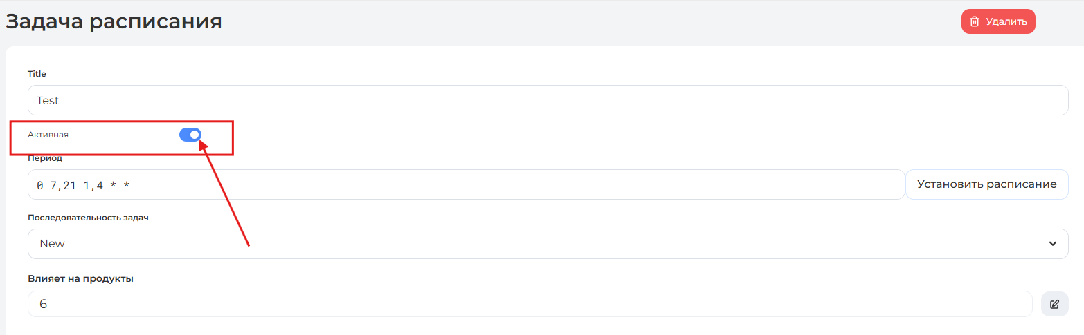 Вы можете отключить расписание в любой момент, переключив ползунок **Активно**