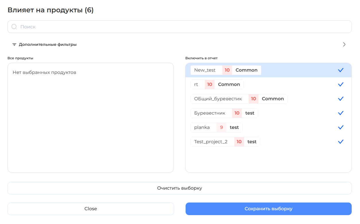 * Или выберите **конкретные продукты** нажатием кнопки **Редактировать** и выберите конкретные продукты.