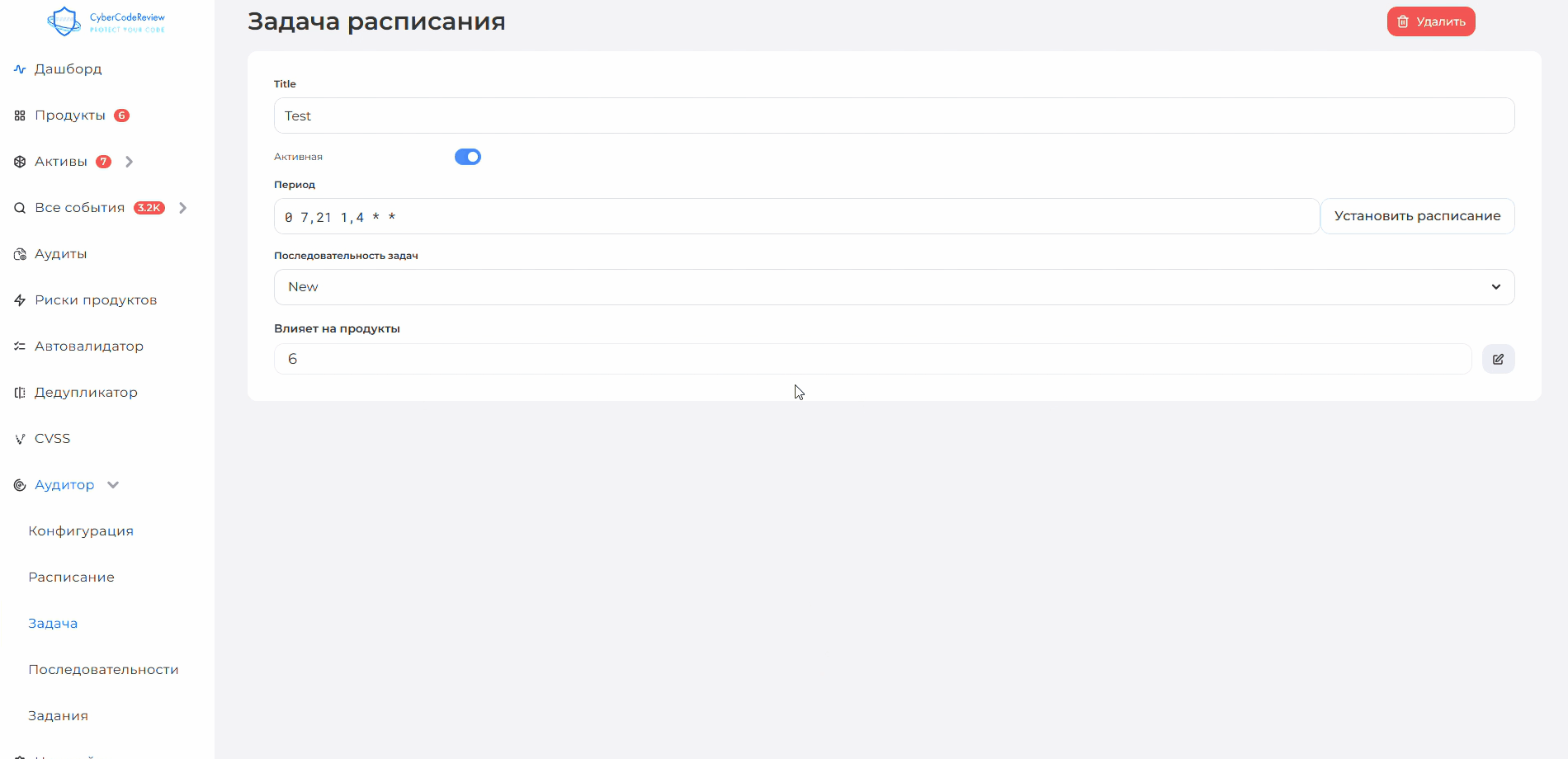 * Все ваши продукты автоматически добавляются в расписание. Вы также можете выбрать теги продуктов, и все продукты с выбранными тегами будут включены в обработку Auditor.