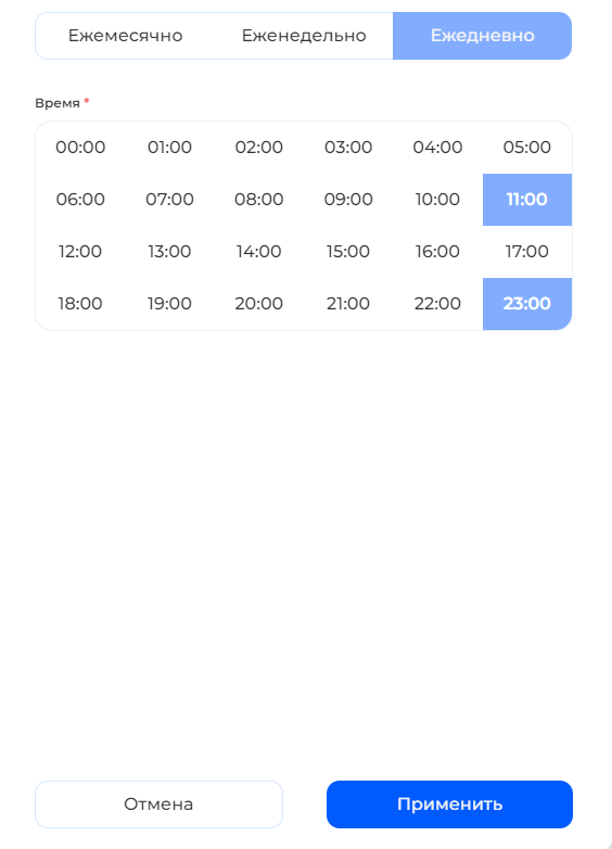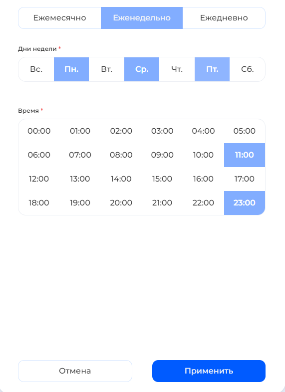 * Периодичность: Ежемесячно, Еженедельно или Ежедневно