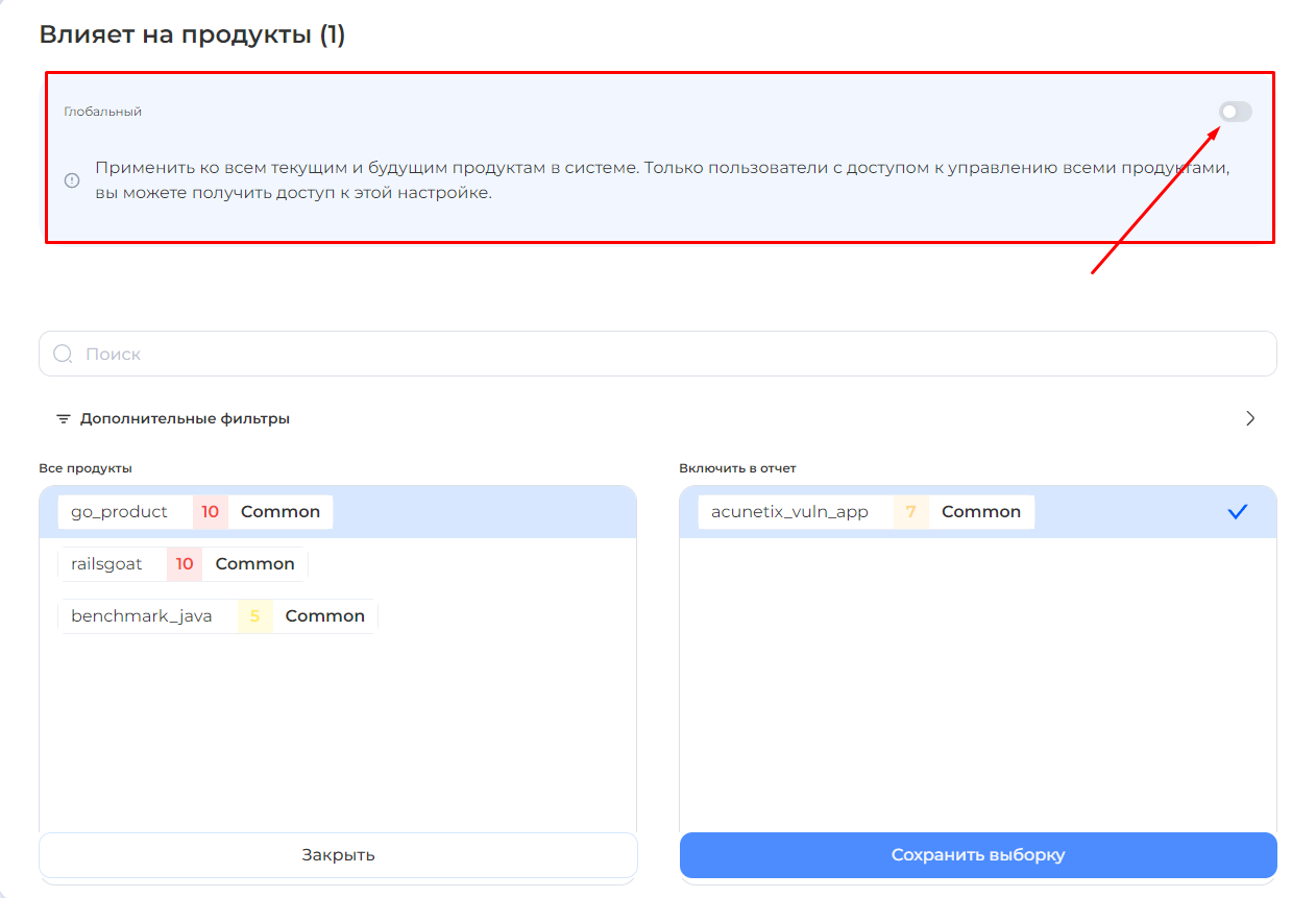Эта настройка может быть выполнена только пользователями с ролью, имеющими доступ ко всем типам продуктов.