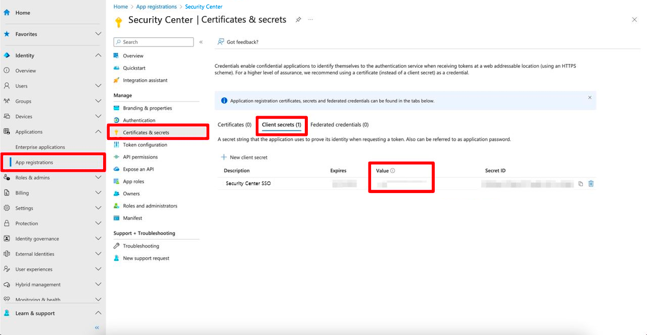 <figure><img src="https://630546901-files.gitbook.io/~/files/v0/b/gitbook-x-prod.appspot.com/o/spaces%2F31dcCQWMOu1AiZEAFiOT%2Fuploads%2FF2h8XCNa3Zfv1unlRCTT%2Fsso_microsoft3.png?alt=media&#x26;token=63909c18-ed84-4af0-b833-226eb374acfe" alt=""><figcaption><p>Клиентский секрет</p></figcaption></figure>