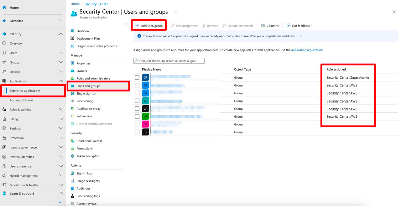 2. Теперь вы сможете назначать пользователей/группы на роли приложения